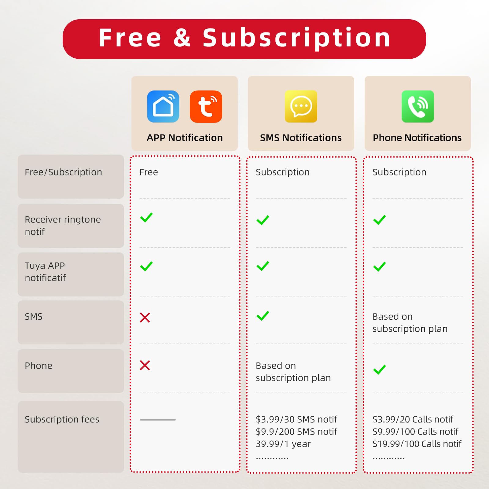 - Never Miss an Help Alarm: Press the wireless call button to trigger a loud alarm with flashing lights and instantly receive an app notification on your phone (App notif free).You can also subscribe to phone or text message notifications for only 9.99/month.