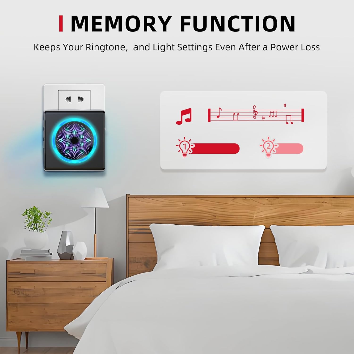 • 【55 Customizable Melodies + Silent Night Mode】Assign unique chimes (Christmas songs, fire alarms, bird sounds) to different doors for location identification. Activate silent mode at night – strobe light alerts without sound – to avoid disturbing sleeping babies or neighbors. Perfect for shift workers, light sleepers, and noise-sensitive environments.