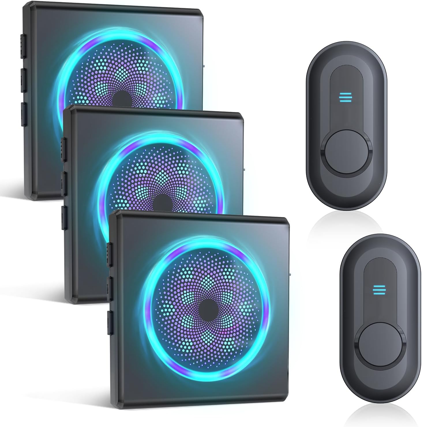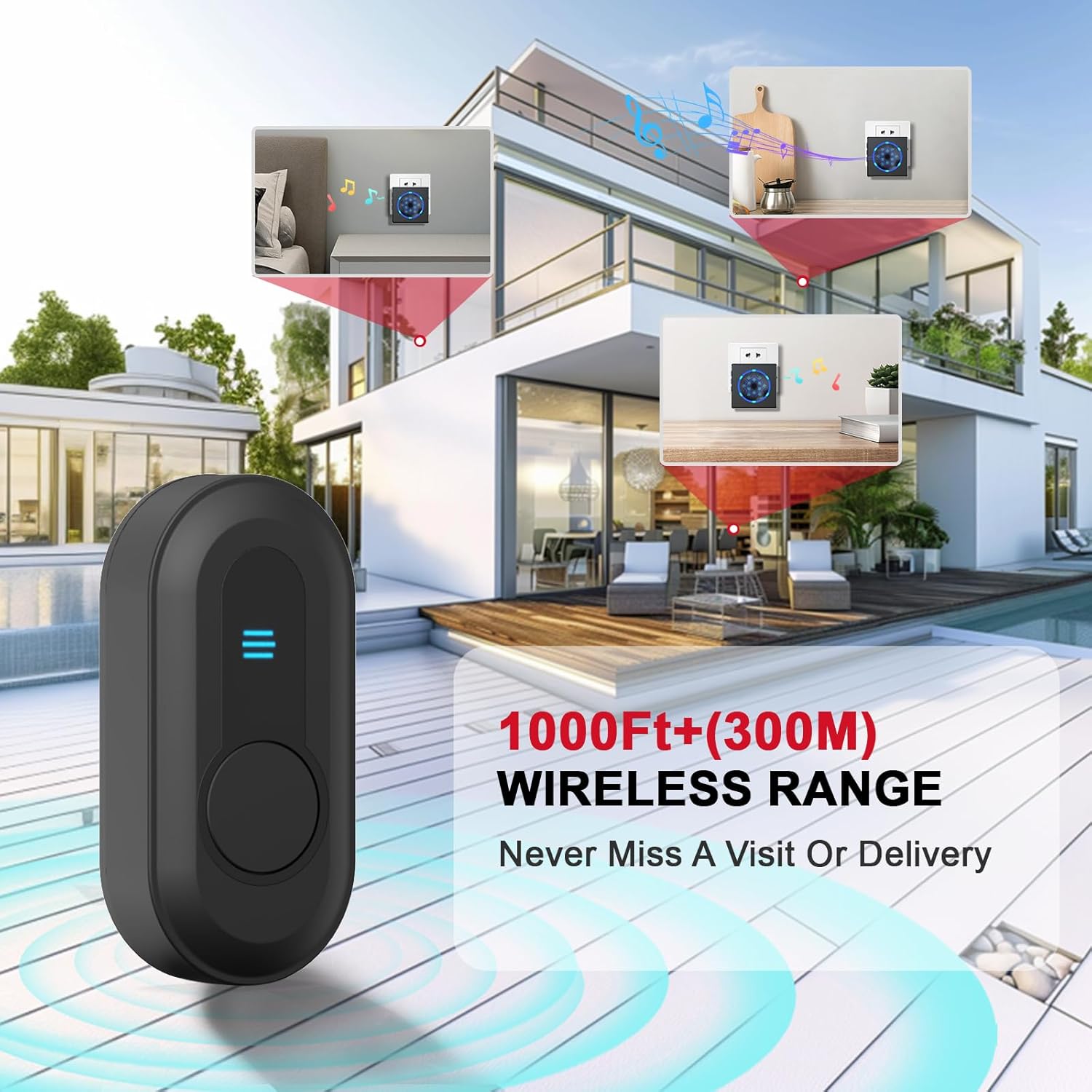 • 【IPX5 All-Weather Durability + 1000ft Coverage】IPX5 waterproof doorbell withstands rain, heat, and freezing temps. 1000ft long-range wireless signal penetrates walls, covering large homes, classroom, warehouses, and offices. Pair multiple receivers (expandable to 5) for whole-house alert systems.