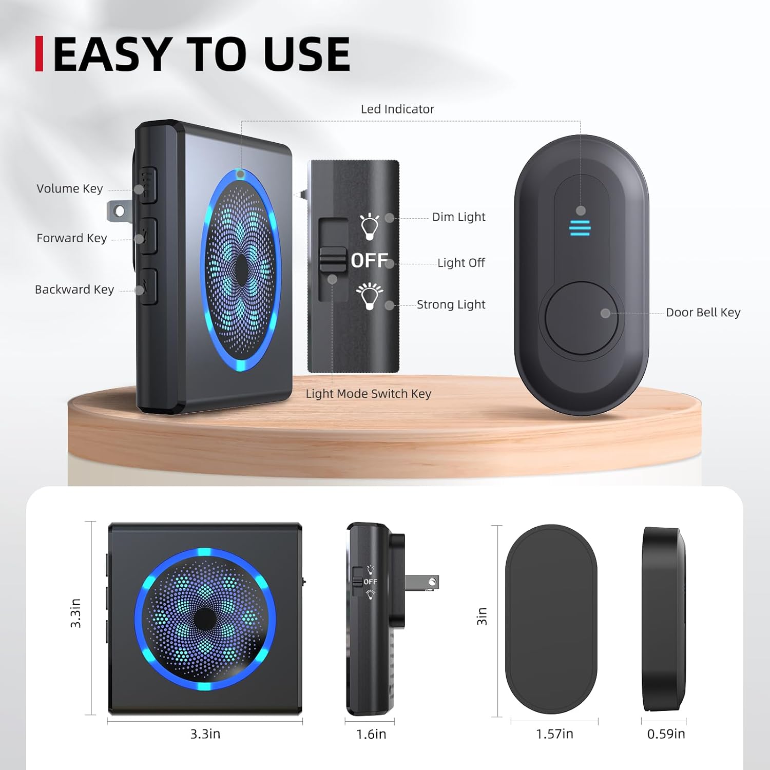 • 【Battery-Saving Button + Always-On Plug-in Receiver】Button: Powered by 1xAAA batteries (included), lasts up to 1 years with daily use (low energy consumption). Receiver: Unlike battery-operated doorbells, it eliminates frequent battery changes – a safe, low-maintenance solution for seniors and assistive living facilities.