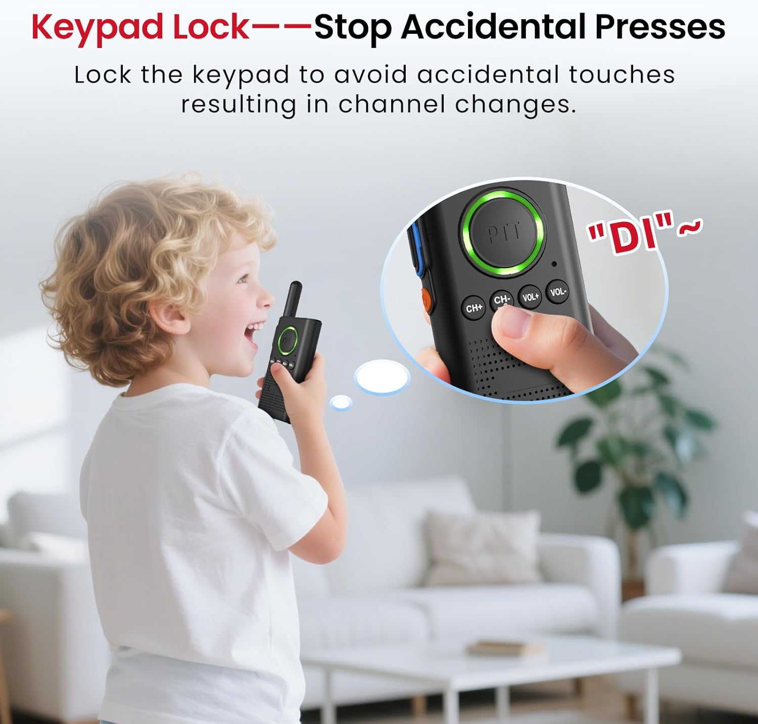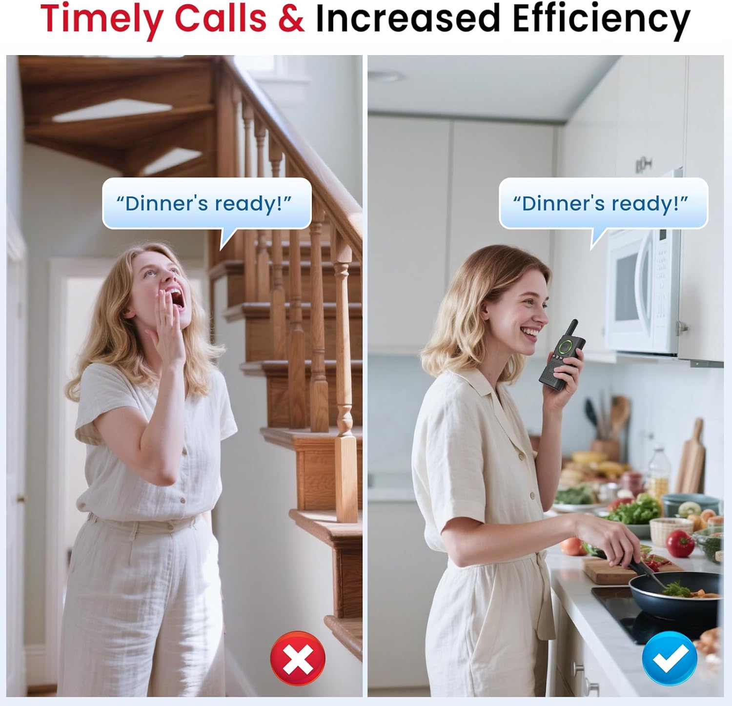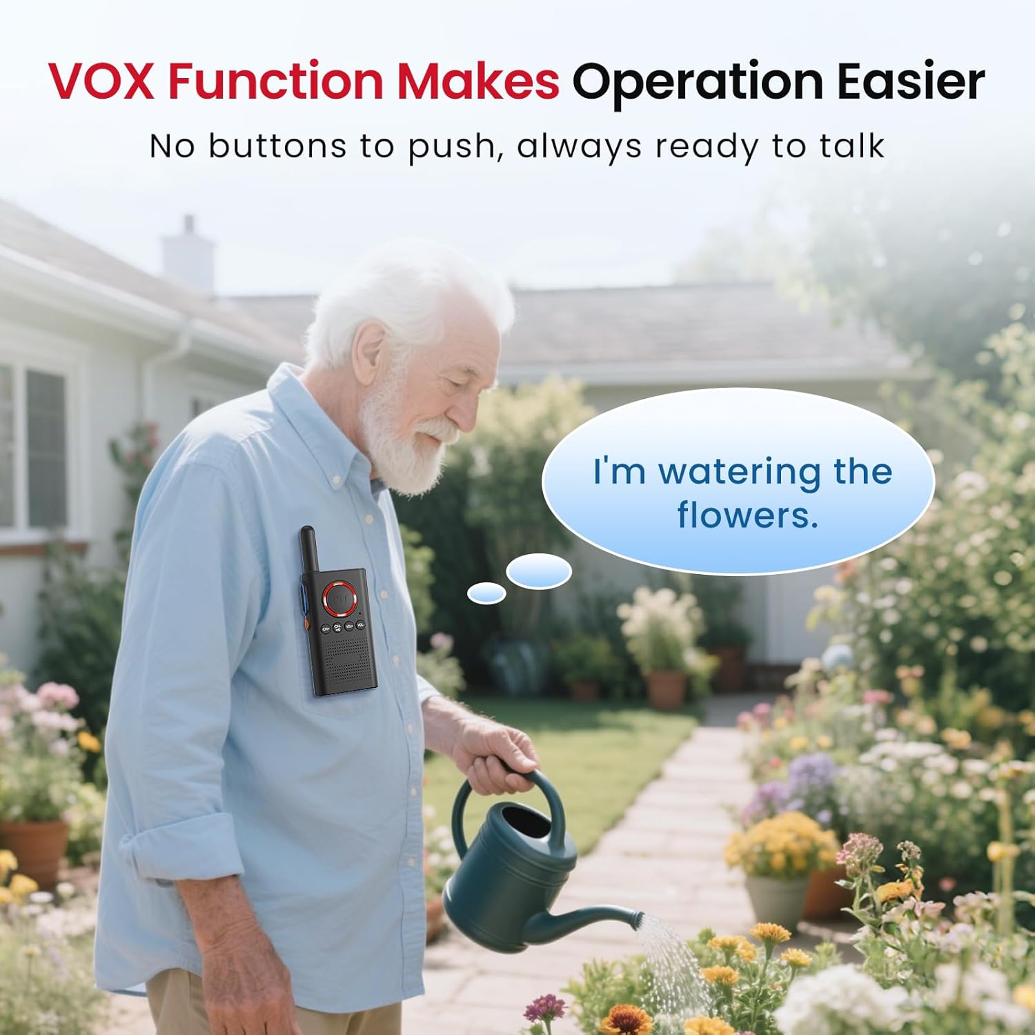 • VOX Hands-Free & Easy Operation – User-Friendly for All Ages| The VOX feature lets you talk while cooking, gardening, or caring for others—no need to press buttons.Large PTT keys and a keypad lock prevent accidental channel changes, making this wireless intercoms for home easy for seniors, kids, and those with limited mobility.No learning curve required!