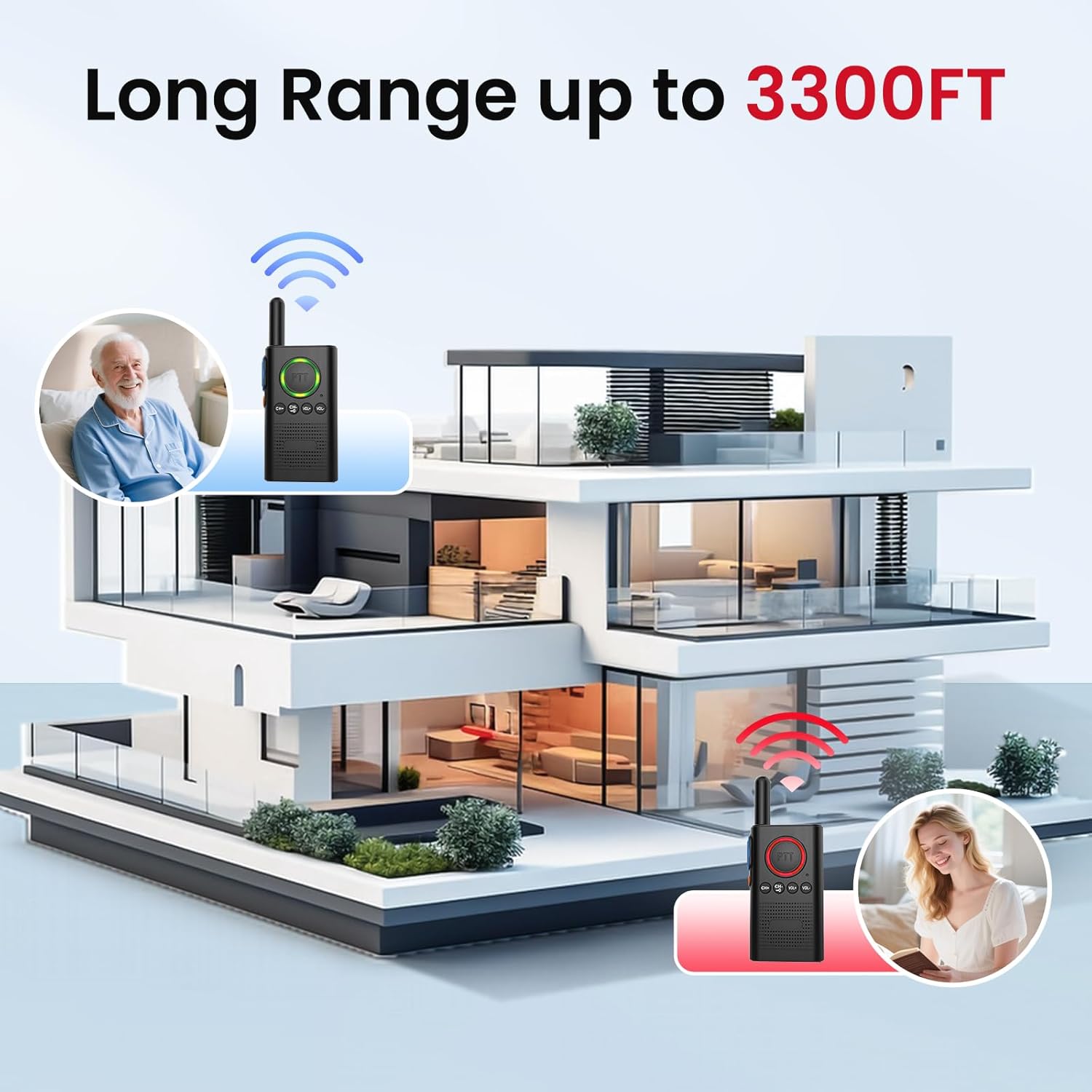 • 3300FT Range for Seamless Cross-Space Communication – Perfect for home intercom system wireless| Enjoy a stable 3300ft signal that connects rooms, floors, yards, and even streets.Ideal for caregivers monitoring seniors or patients in different areas, parents checking on kids playing outside, or families coordinating across large homes.No more shouting—just clear, reliable communication wherever you are.