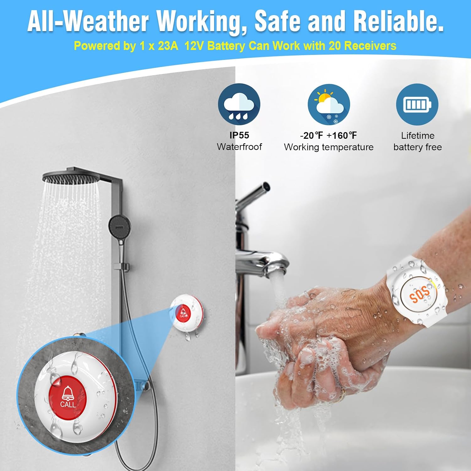 Stay independent and safe with the CallToU Wireless Caregiver Pager for Seniors. This long-range panic button system allows elderly individuals or those needing extra care to call for help instantly with one press. The signal reaches up to 300ft/90m in open areas, ensuring quick communication between caregiver and patient—whether at home, in hospitals, or nursing facilities. The alert button is easy to use, waterproof, and can be worn as a pendant or mounted on a wall for convenience. At CallToU, we’re committed to providing reliable, 24/7 support and dependable products that bring peace of mind to every family.